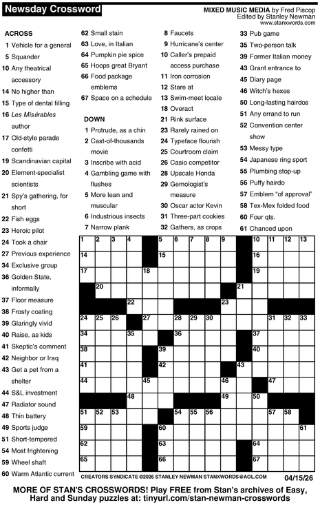 Crossword for 4/15/2026